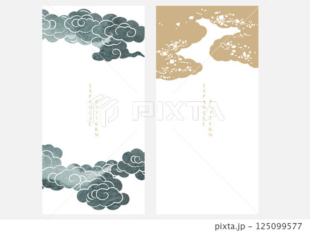 Japanese background with hand drawn line cloud pattern vector. Vintage template with geometric pattern.