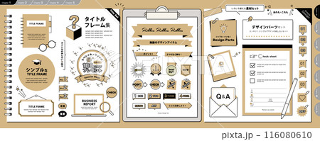 シンプルでおしゃれ タイトルフレームと色々使えるデザインのあしらい素材セット