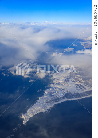 北海道_えりも岬の空撮冬景色