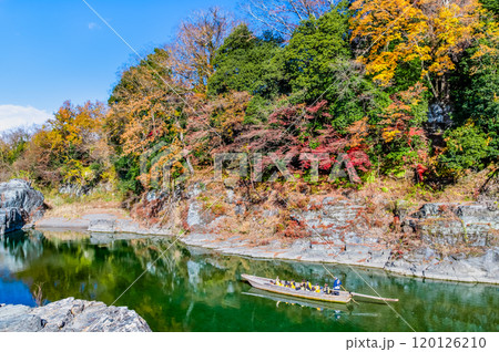 埼玉・長瀞渓谷 紅葉に染まる岩畳と荒川の渓流