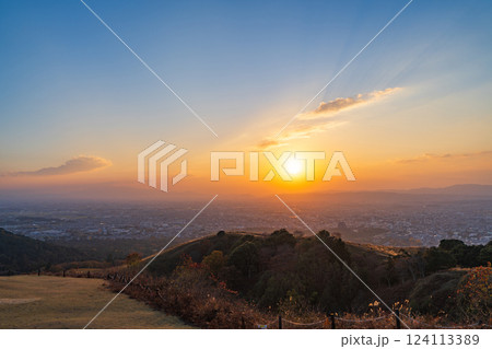 【秋】奈良公園 若草山からの眺望【夕景】