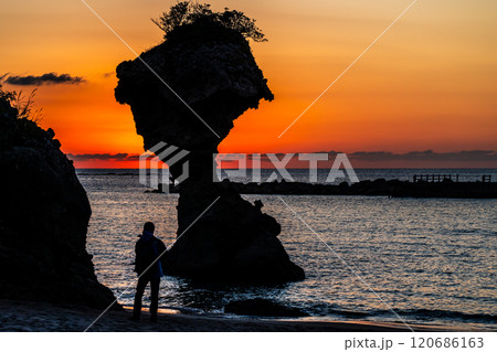 りんご岩(傘岩)の日没後夕焼け 柿泊海岸 ながさきサンセットロード 【長崎市】