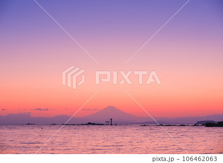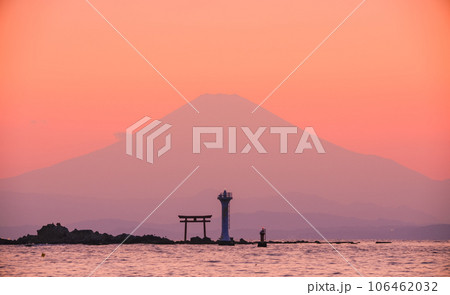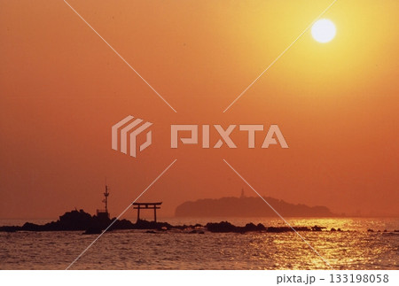 森戸海岸から望む名島鳥居と江ノ島の絶景 森戸海岸から望む名島鳥居と江ノ島の絶景