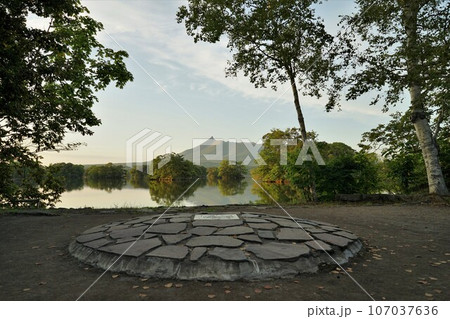 大沼と駒ヶ岳・湖畔のモニュメント(北海道・七飯町)