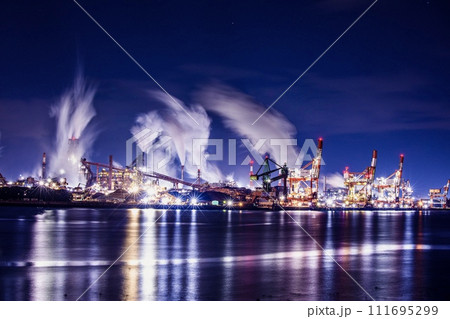 名古屋市、名古屋港9号地南堤から眺める日本製鉄名古屋製鉄所の夜景
