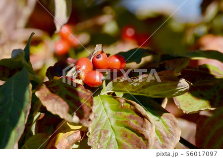 三鷹中原になる赤く色づき始めたハナミズキの実