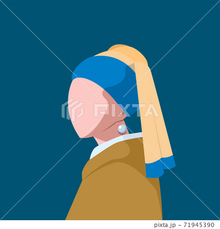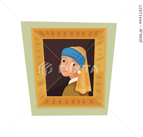 Famous painting of girl with pearl earring and blue headscarf. Museum exhibit. Flat vector for promo