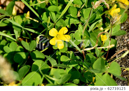 三鷹中原に咲く黄色いカタバミの花