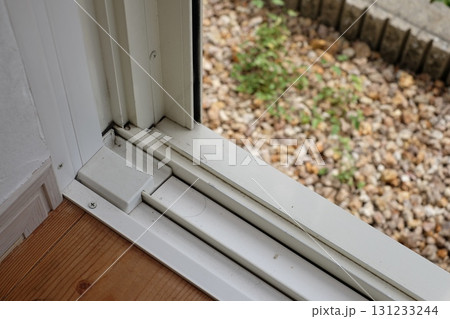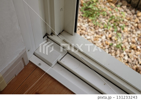 開けっ放し吐き出し窓 換気空き巣不用心防犯イメージ写真素材