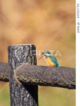 料亭の手すりに止まるヤマセミ