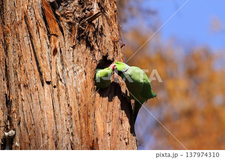 ミドリコンゴウインコの求愛