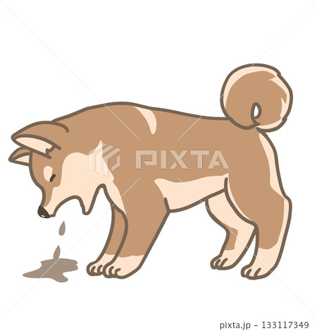 吐き戻しをする柴犬のシンプルイラスト