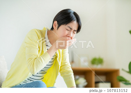吐き気 嘔吐 気持ち悪い 吐く 体調不良 10代か20代の若い男性 ポートレート 部屋着