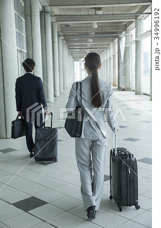 スーツケースを持って歩くビジネスパーソン後ろ姿