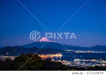 (静岡県)日本平吟望台から望む清水港の灯りと富士山