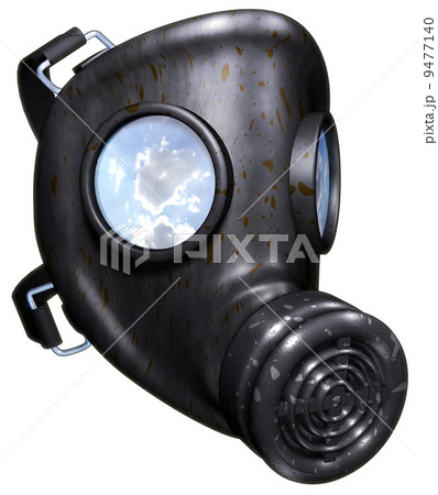 専用の吸収缶を備えた防毒マスク(イラスト風)