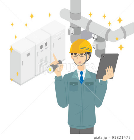 空調などの設備施工管理に従事する作業服の男性