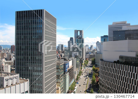大阪梅田の都市風景 早朝 阪急前交差点付近