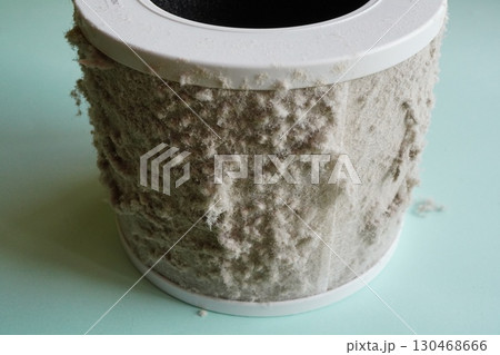 ホコリで汚れた円筒形の空気清浄機フィルター クローズアップ
