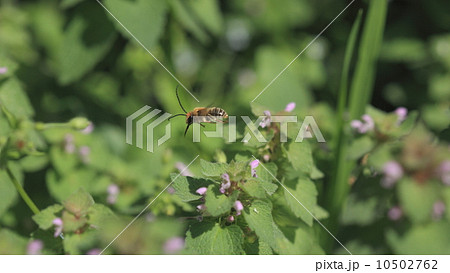 生き物 昆虫 舌(中舌)を出したまま花の間を飛び回るチョットお行儀の悪いニッポンヒゲナガハナバチのオス