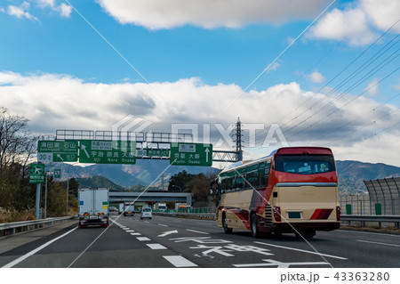 新名神高速道路 瀬田東ジャンクションを走行中の観光バス