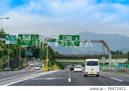 滋賀県 名神高速道路を走行中の自動車 もうすぐ瀬田東ジャンクション