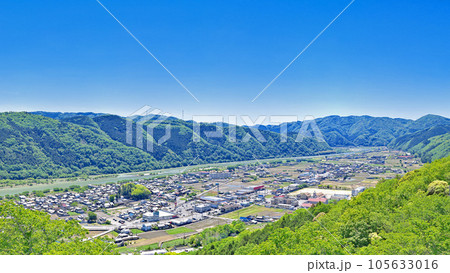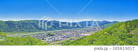 【茶臼山城跡展望台より周匝平野を一望 (吉井城山公園)】 (高解像度版) 岡山県赤磐市周匝