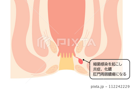肛門の病気、痔「あな痔(痔ろう)」 図解イラスト、断面図