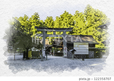 水彩画風 小國神社 二の鳥居 静岡県森町