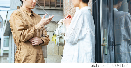 住宅前で説明する作業員