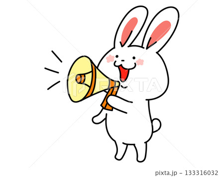 拡声器を持って呼びかけをするかわいいうさぎさん