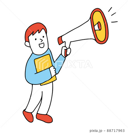 拡声器・メガホンを使ってインフォメーションをお知らせする男性のイラスト