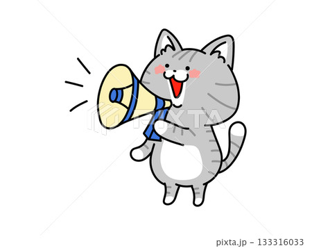 拡声器を持って呼びかけをするかわいい猫さん