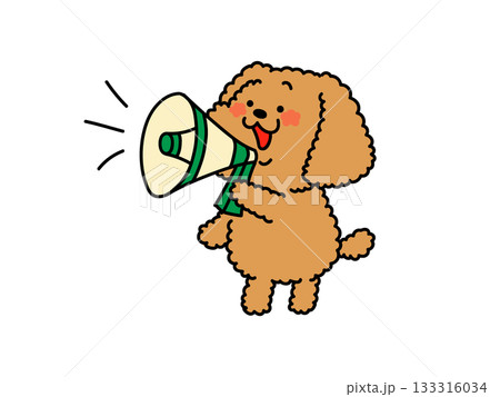 拡声器を持って呼びかけをするかわいい犬さん