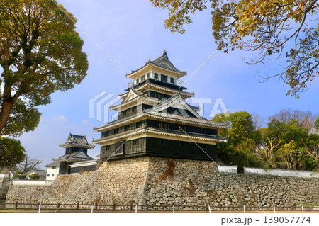 周防国 秋の「岩国城」の天守閣・石垣と曲輪・眺望