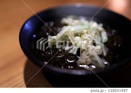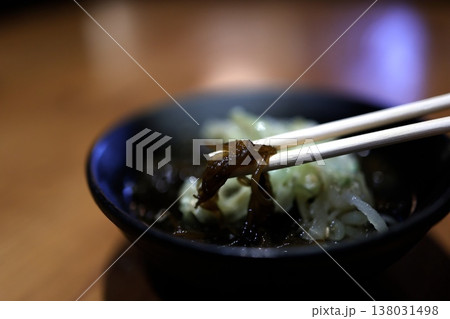 もずく酢。さっぱりした海藻料理の和食小鉢。クローズアップ。