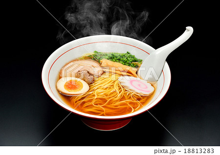 注意)黒背景に小ゴミ・傷が残ります。湯気はレタッチ合成です。中華そば(醤油味)イメージ。