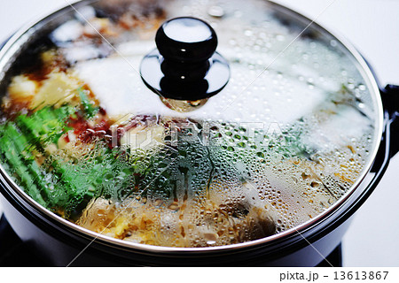 チゲ鍋 鍋料理 韓国料理 味噌煮込み アツアツの赤から鍋 イメージ素材