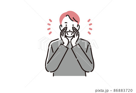 制服姿の男子高校生が頬に手を当て声援を送るベクターイラスト素材。
