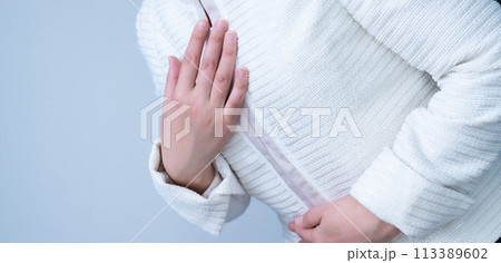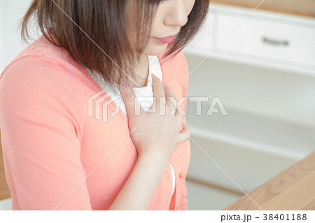 胸が苦しい 動悸息切れ ネガティブイメージ 体調不良 女性 ポートレート 20代 30代