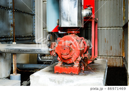 経年劣化により錆びた消防設備の消火栓ポンプユニット