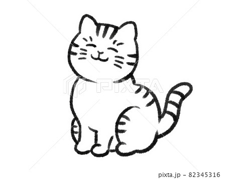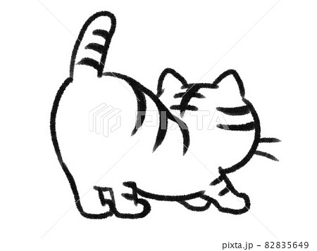 日本画タッチの背中を向けて伸びをする猫イラスト