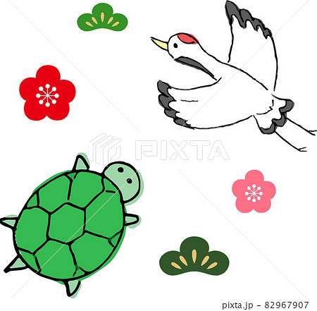 年賀素材の鶴と亀のイラスト、松と梅のアイコン