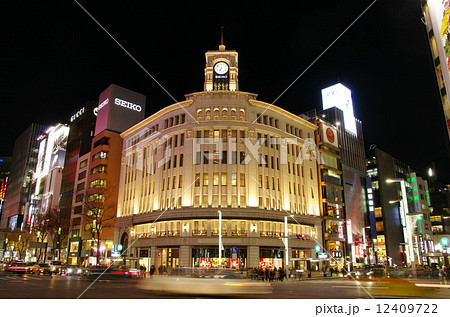 銀座 都市風景 ビル風景 銀座商店街 ビルイメージ 銀座和光 未来的