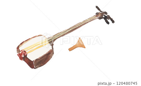 水彩で描いた三味線のイラスト