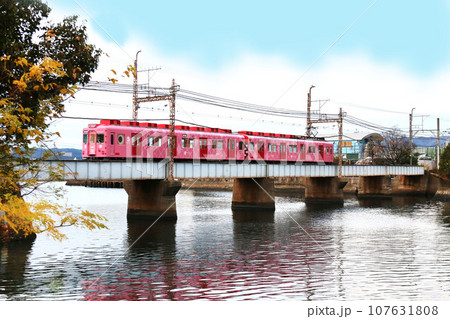 南海電鉄和歌山港線 築地橋を渡るめでたい電車「さち」