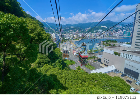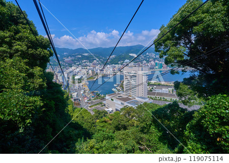 静岡県の伊豆半島にある温泉街熱海の街を一望できるアタミロープウェイからの景色