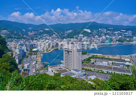 静岡県熱海市の熱海展望台から北側の眺望(熱海市街,熱海港,岩戸山など)