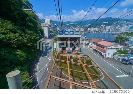 静岡県の伊豆半島にある温泉街熱海の街を一望できるアタミロープウェイ乗場