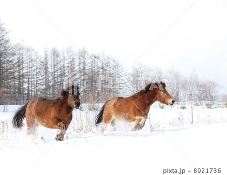 北海道の馬 冬の道産子